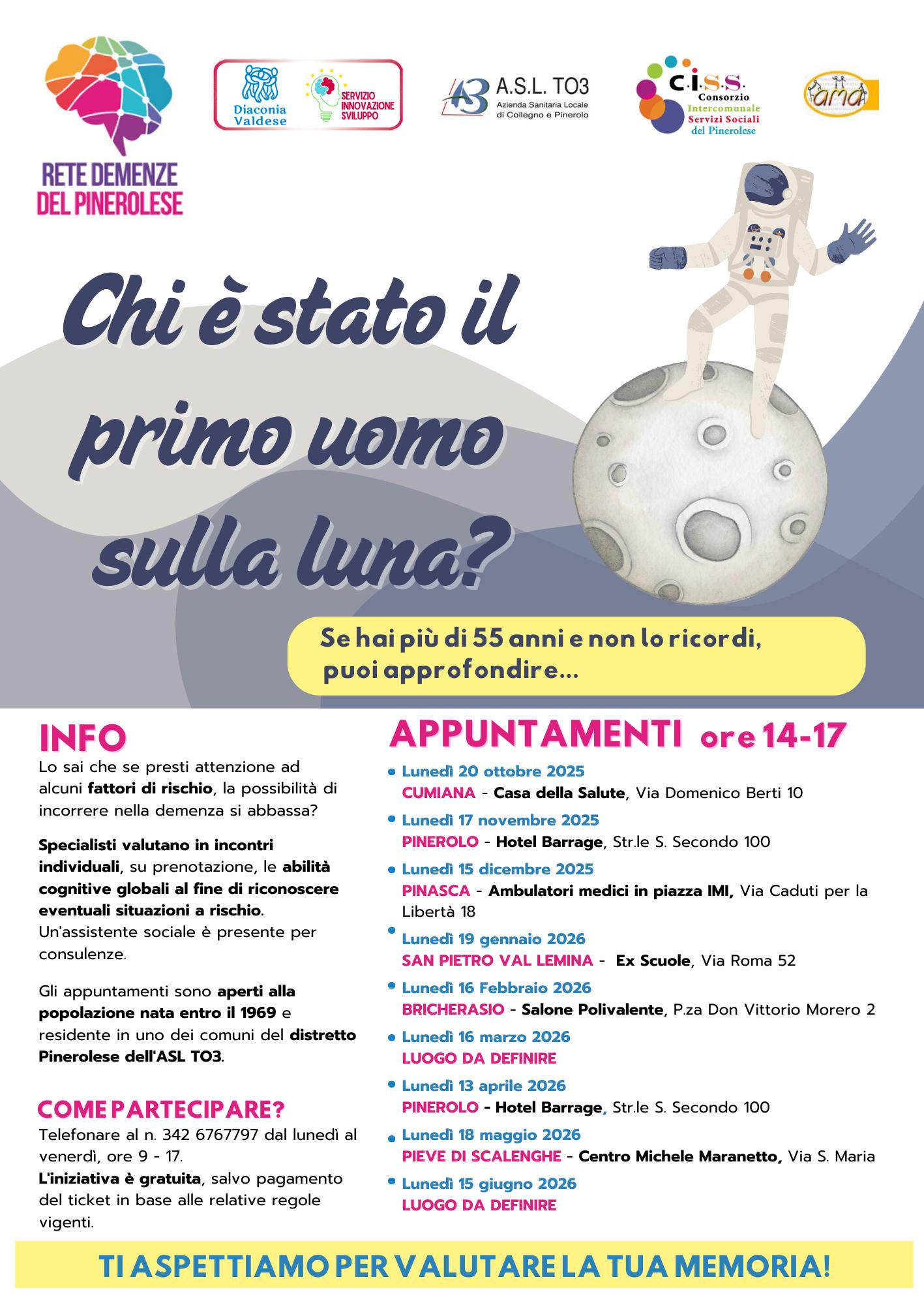 Si parte lunedì 17 novembre a Pinerolo e si toccano per ora i comuni di Pinasca, San Pietro Val Lemina, Bricherasio e Pieve di Scalenghe. Gli incontri saranno sempre di lunedì dalle 14 alle 17.